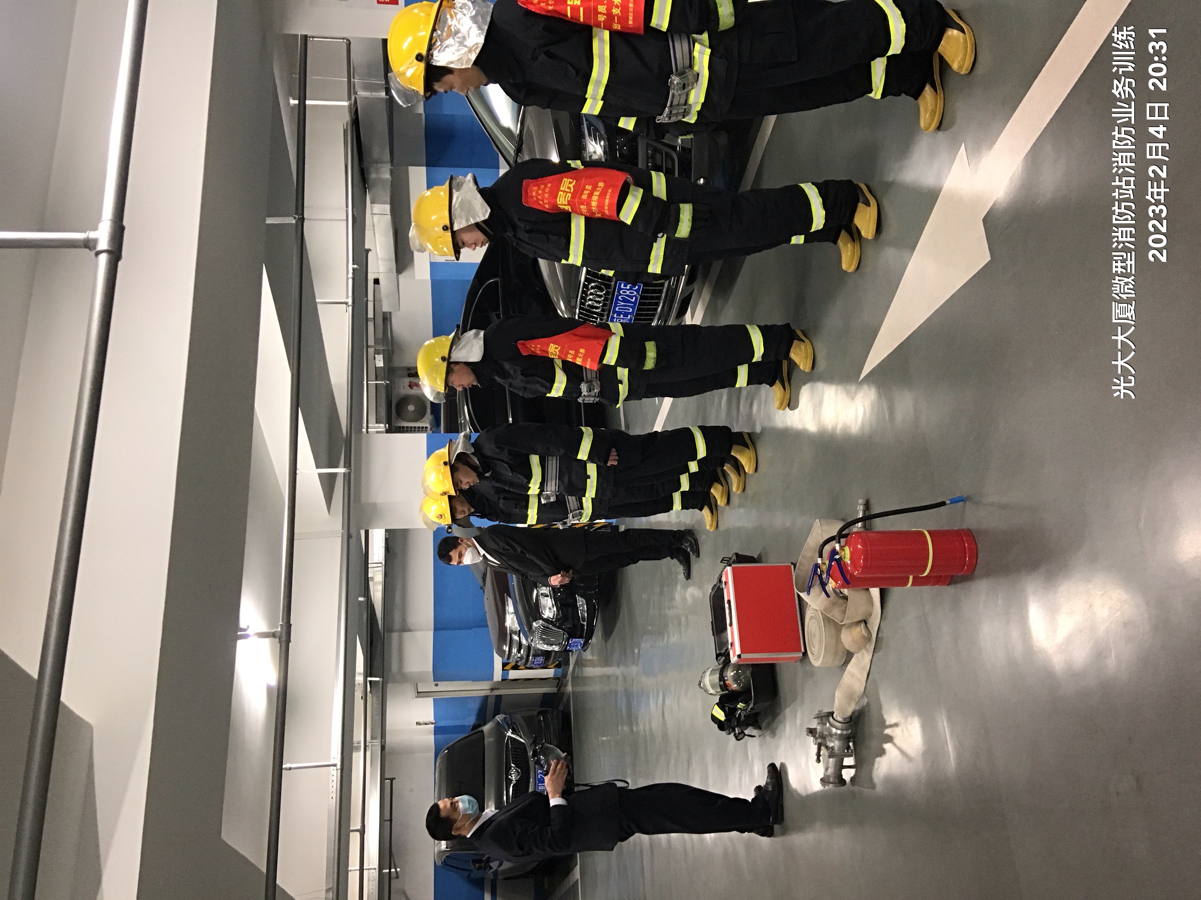 ▲陈志华带领光大大厦微型消防站队员们进行日常训练
